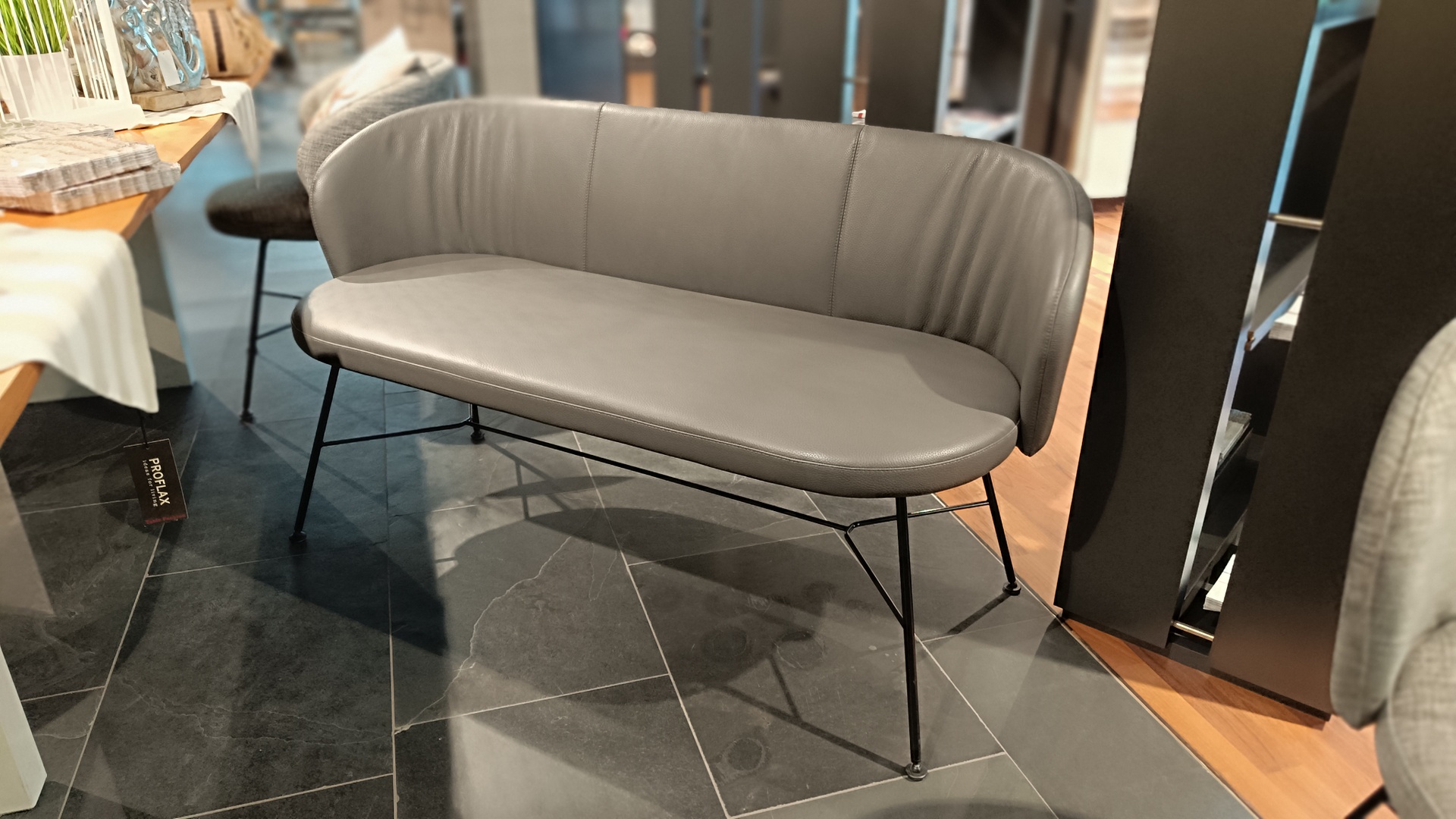 Bank Leder Donna grey, Drahtgestell Metall