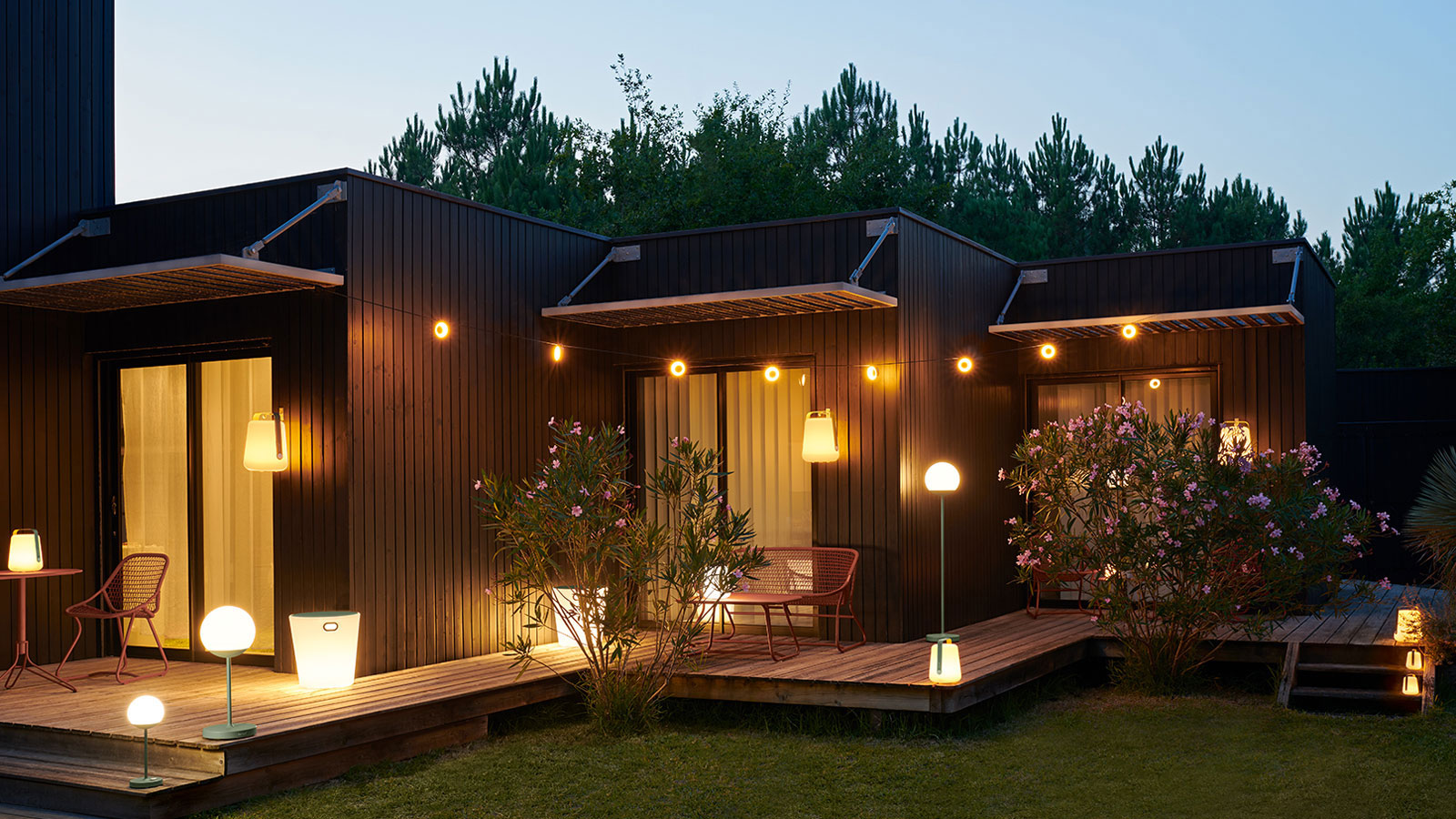 Steuerung über Schalter oder auf Entfernung über integriertes, mit der Anwendung „Fermob lighting“ kompatibles Bluetoothsystem,