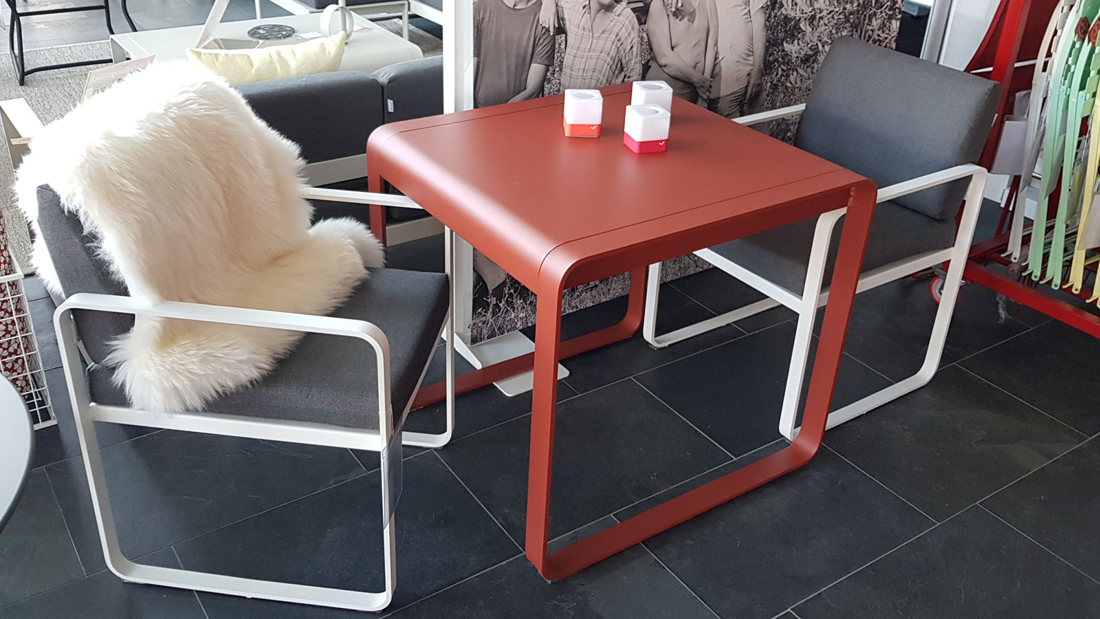 Tisch mit 2 gepolsterten Stühlen (Einzelstück ab Ausstellung, ohne Dekoration)