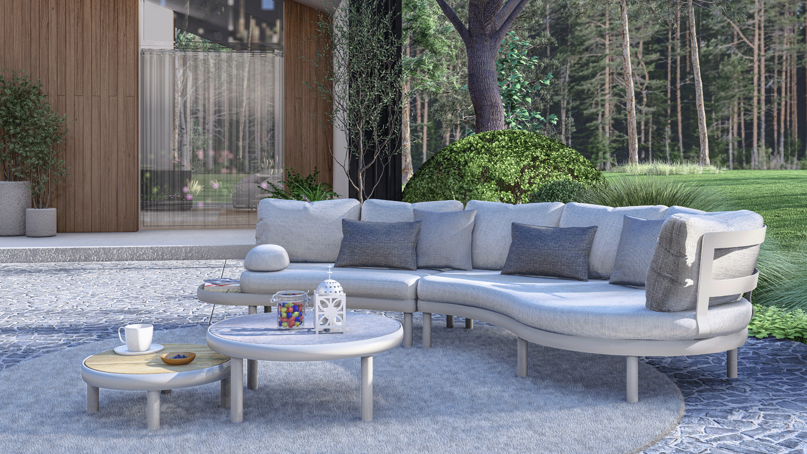 inkl. 2 Beistelltische, 1 Armlehnkissen und 2 Kuschelkissen