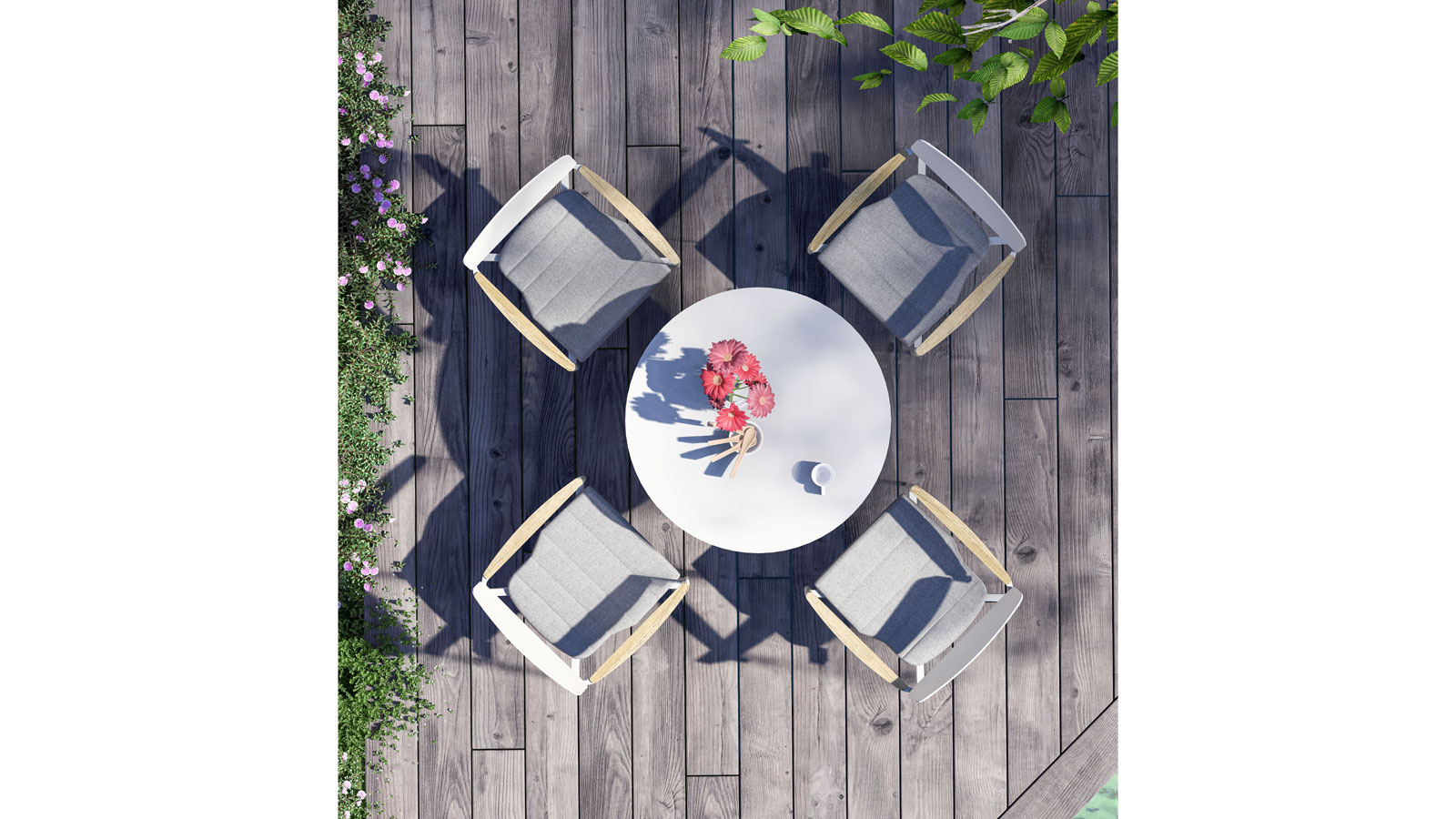 - Armlehnen: recyceltes Teakholz